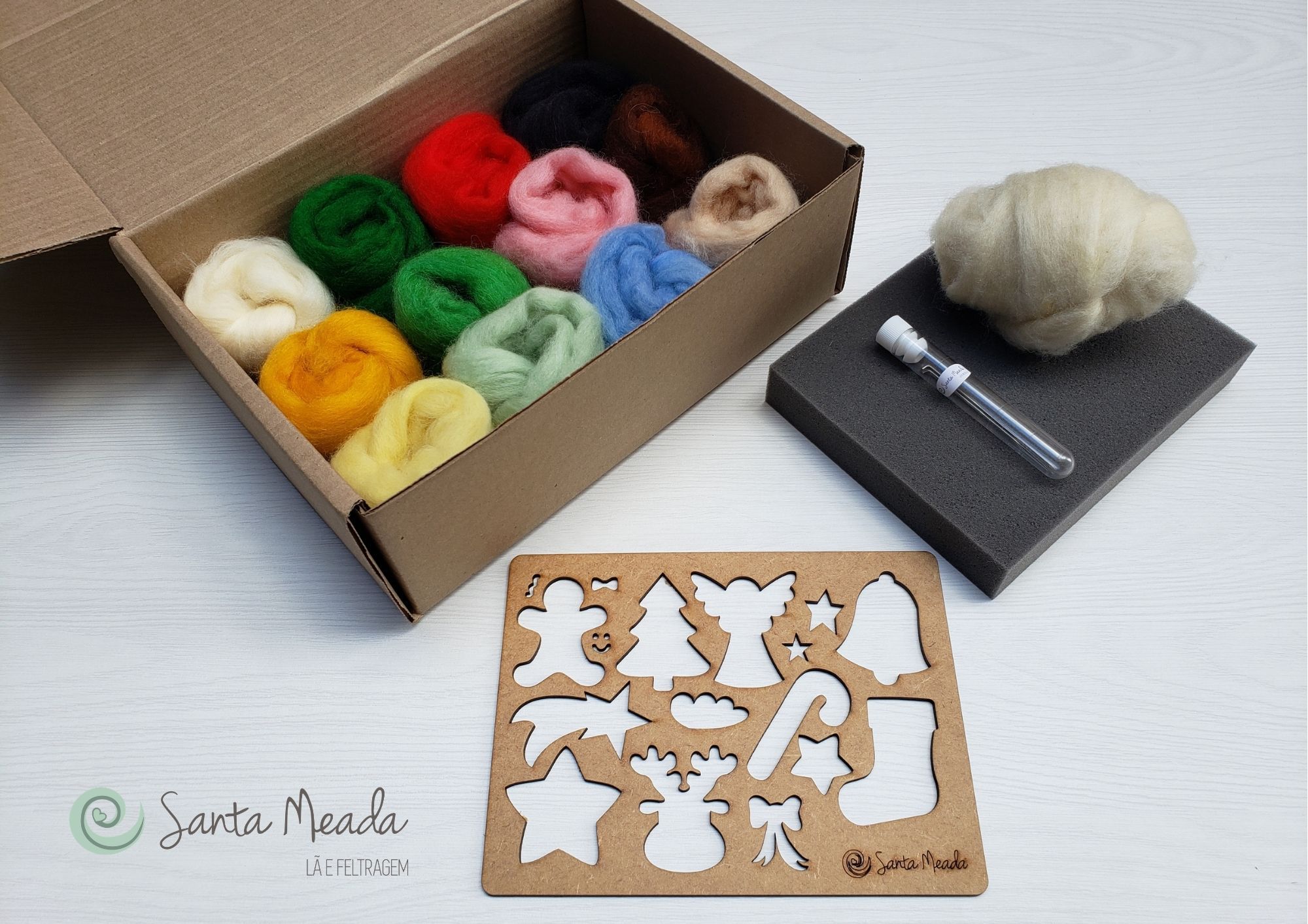 Kit de Feltragem Natal com Lã de Carneiro Corriedale Penteada e Cardada Crua